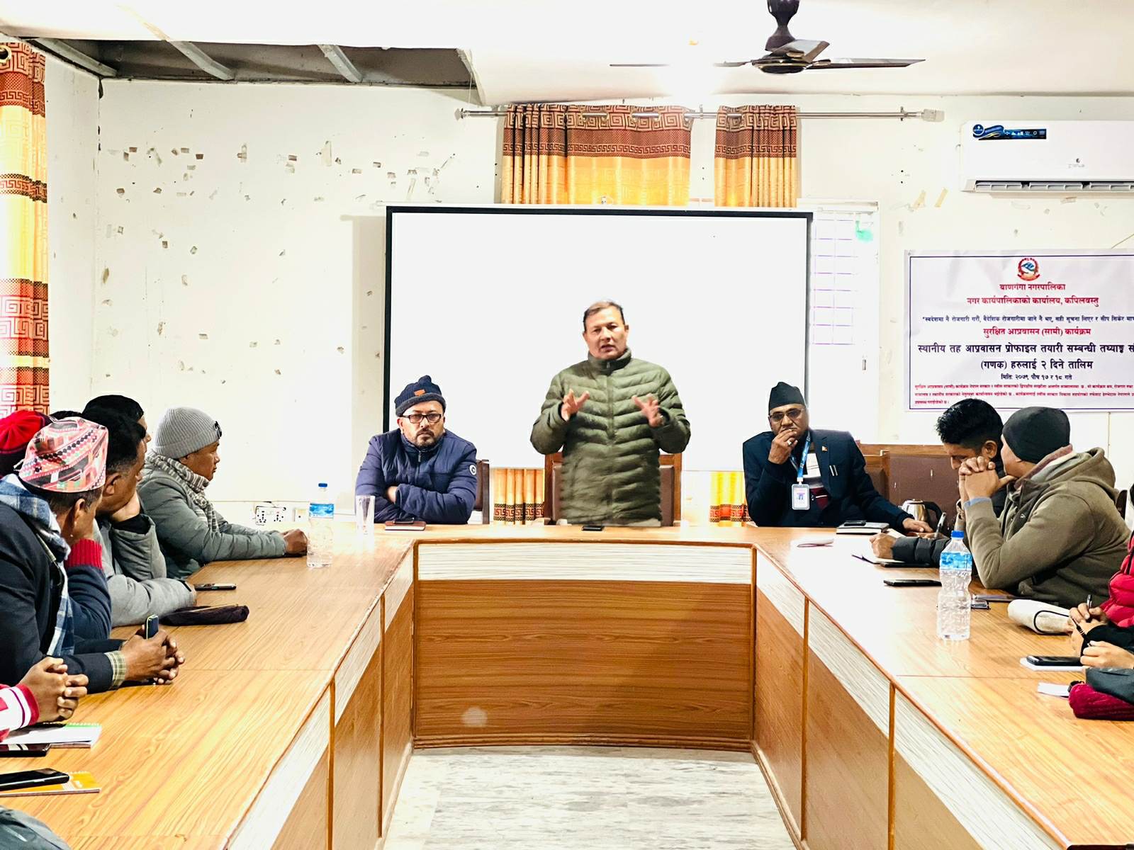 कार्यक्रममा नगर प्रमुख चक्रपाणी अर्यालले आप्रवासन (सामी) कार्यक्रम अन्तर्गत सो तालिम संचालन भएको बताउनुभयो । उहाँले यस कार्यक्रमबाट नगरबाट बिदेश गएका, फर्केका, मृत्यु भएका, अंगभंग भएका, अध्ययन गर्न गएकाको संख्या पत्ता लगाउन नगरबासीको तथ्याङ्क संकलन गरिने जानकारी दिनुभयो । गणकहरुलाई तथ्याङ्क संकलनका लागि तालिम दिइएको प्रमुख प्रशासकीय अधिकृत खिमानन्द भुसालले बताउनुभयो ।