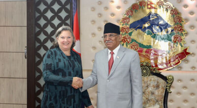 काठमाडौँ ।नेपाल भ्रमणमा आएकी राजनीतिक मामिलासम्बन्धी अमेरिकी उपविदेशमन्त्री भिक्टोरिया नुल्यान्डले सोमबार प्रधानमन्त्री पुष्पकमल दाहाल प्रचण्डलाई