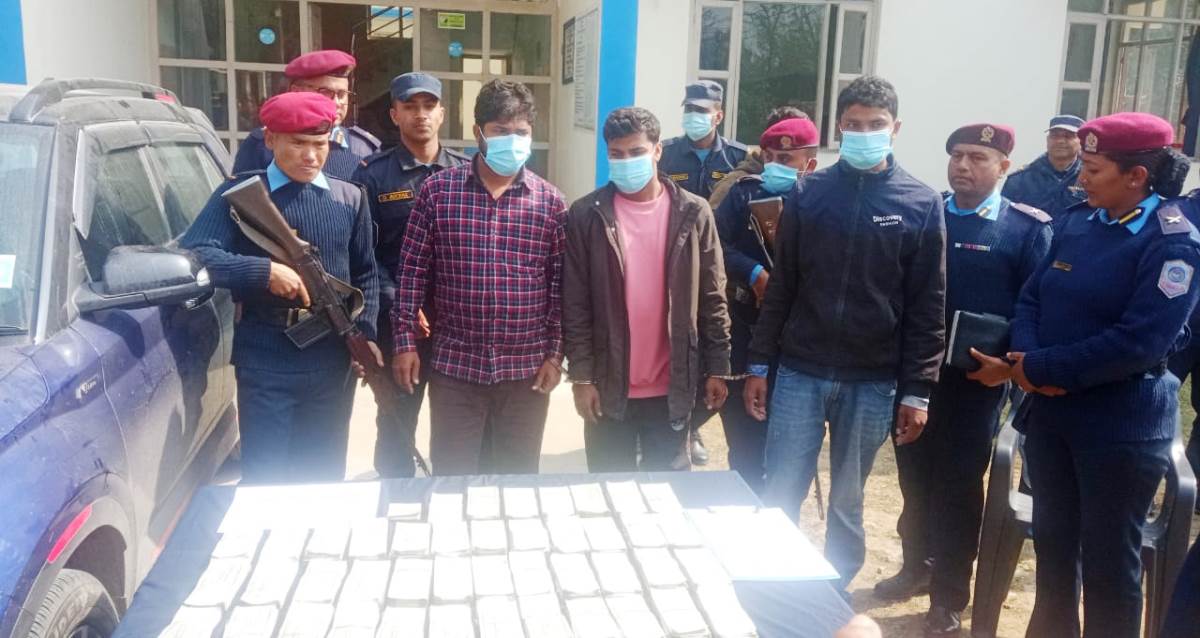 बिहीबार राति ९ बजे प्रहरी उपरीक्षक प्रेमबहादुर बस्नेतको नेतृत्वमा खटिएका प्रहरी टोलीले कपिलवस्तु नगरपालिका–२ जमुवारपुलबाट भैरहवाको तौलिहवातर्फ आउँदै गरेको कार चेकजाँच गर्ने क्रममा उनीहरुलाई पक्राउ गरिएको हो । पक्राउ पर्नेमा कपिलवस्तु शुद्धोधन गाउँपालिका–६ विमिहा बस्ने ३५ वर्षीय राजेशकुमार बर्मा, सोही स्थानका २६ वर्षीय राकेशकुमार बर्मा र गाडी चालक भारतको सिद्धार्थनगर ग्राम अनुपनगर नौगढ घर भई हाल मायादेवी गाउँपालिका–१ इमिलिया बस्ने २८ वर्षीय हमिद मुसलमान छन् ।