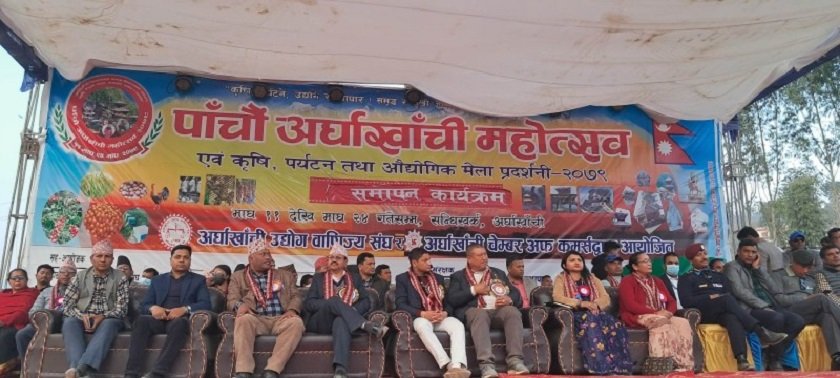 अर्घाखाँची जिल्लाको सदरमुकाम सन्धिखर्कमा शुरु भएको पाँचौं अर्घाखाँची महोत्सव करिब पाँच करोडको कारोवार गर्दै सम्पन्न भएको छ । अर्घाखाँची उद्योग बाणिज्य संघ र अर्घाखाँची चेम्वर अफ कमर्सको संयुक्त आयोजनामा माघ ११ गतेदेखि संचालन भएको महोत्सव सोमबार सकिएको हो ।