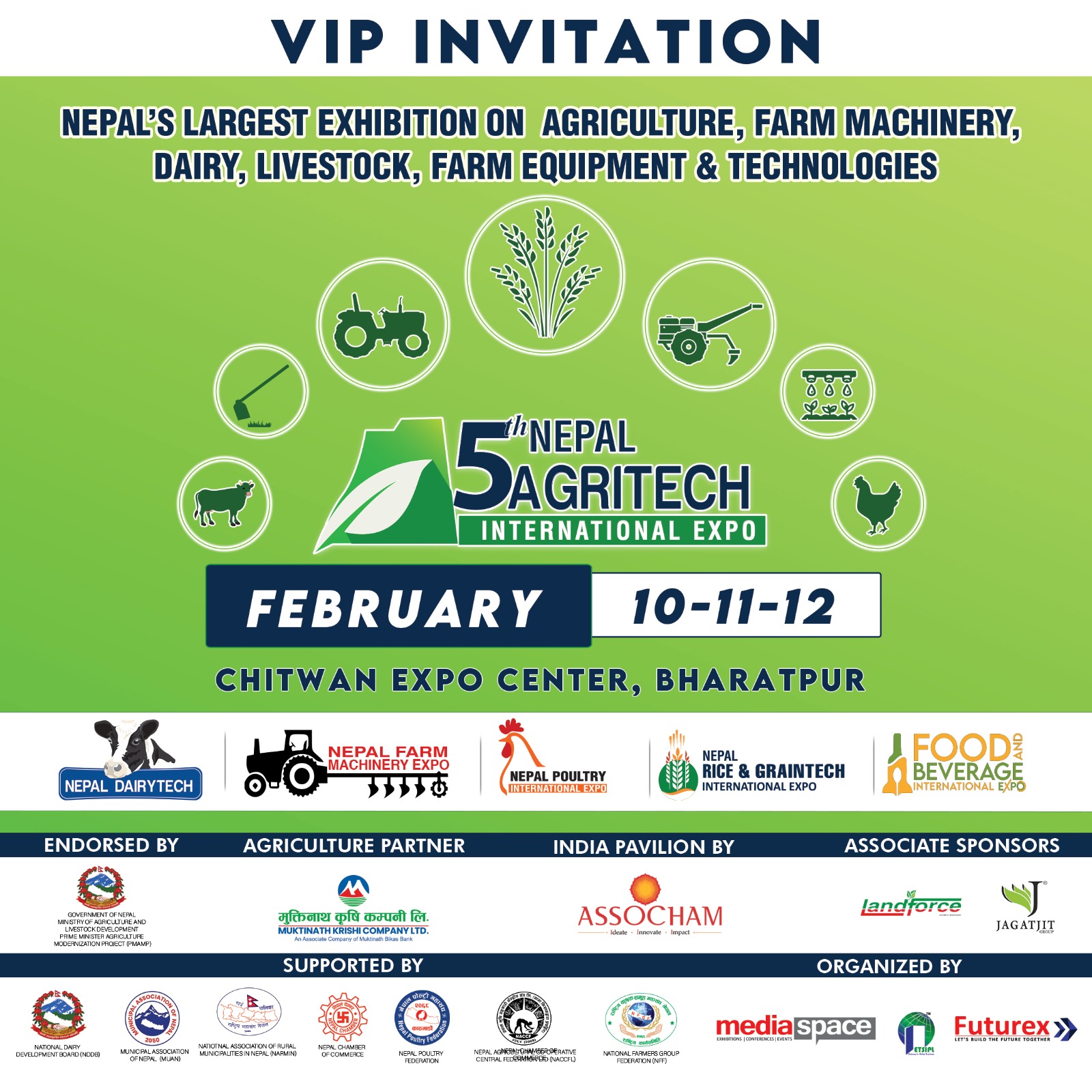मीडिया स्पेस सोल्युसन तथा फ्युचरएक्सको आयोजनामा हुने कार्यक्रमलाई नेपाल सरकार कृषि तथा पशुपंक्षी विकास मन्त्रालय, प्रधानमन्त्री कृषि आधुनिकीकरण परियोजनाले प्रवर्द्धन गर्दै छ । बिहान १० बजेदेखि बेलुकी ६ बजेसम्म आधुनिक कृषि यन्त्र तथा उपकरणहरू निःशुल्क अवलोकन गर्न सकिने छ ।