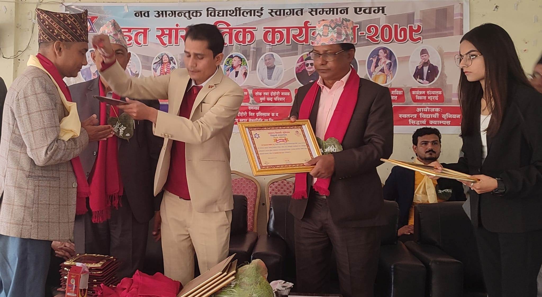 कपिलवस्तुको बाणगंगास्थित सिद्धार्थ क्याम्पसमा रहेको स्वतन्त्र विद्यार्थी युनियन (स्ववियू)ले विभिन्न क्षेत्रमा रहेका दुई दर्जन बढी व्यक्तित्वलाई सम्मान गरेको छ ।