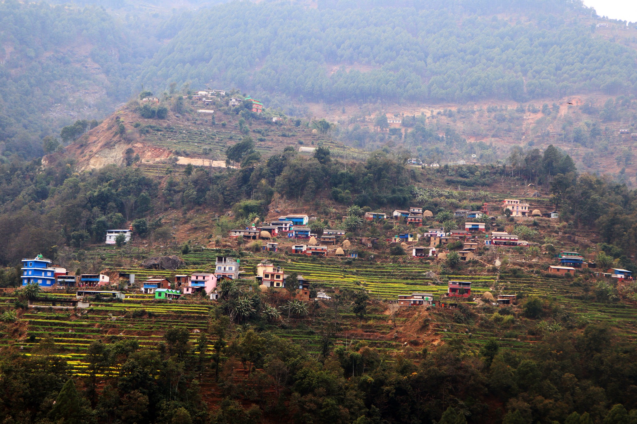 बागलुङ नगरपालिका–५ मा रहेको बान्द्रे गाउँ । परम्परागत ढुङ्गेघरले भरिएको गाउँले मौलिक संस्कृति बचाएको छ । तस्बिर: डम्मर बुढा मगर/रासस