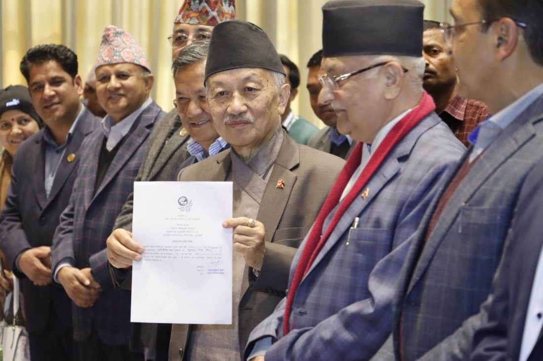 समर्थकमा योगेश भट्टराई, टोपबहादुर रायमाझी, जुलीकुमारी महतो महासेठ, दिलकुमारी रावल थापा र अमन कुमार मास्के रहेका छन् ।