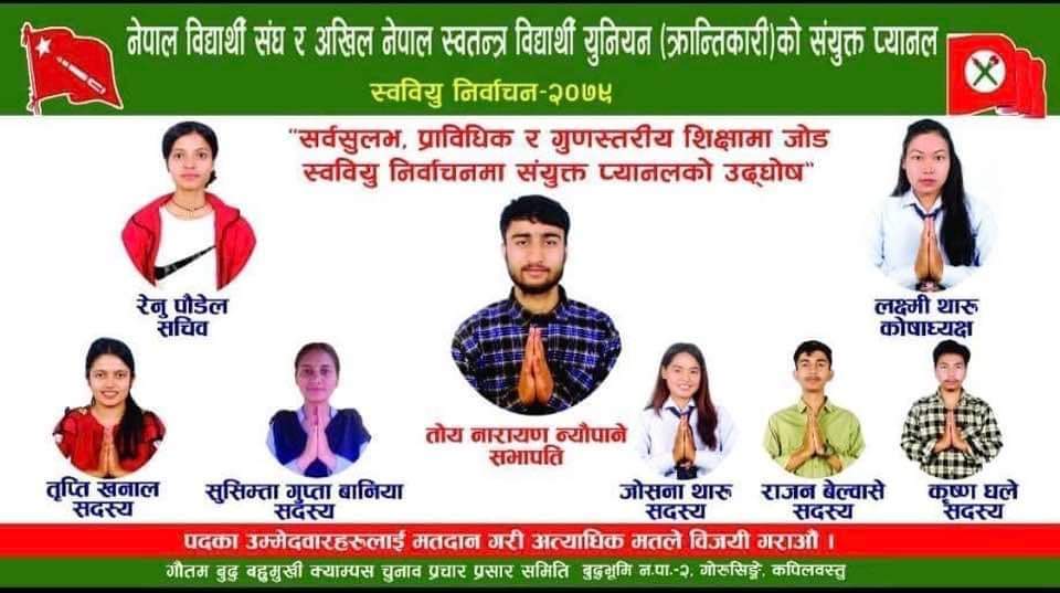 गौतमबुद्धमा स्ववियुको पहिलो चुनाव, नेविसंघ-क्रान्तिकारीको प्यानल विजयी