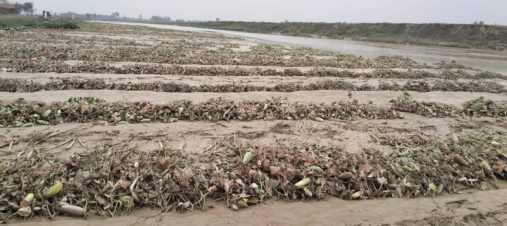 शिवराज नगरपालिकाको अनुदानमा सफल कृषक समूहले सुरही खोलाको बगरमा लगाएको तरकारी खेतीमा १६ लाख बराबरको क्षति पुगेको अनुमान गरिएको छ ।