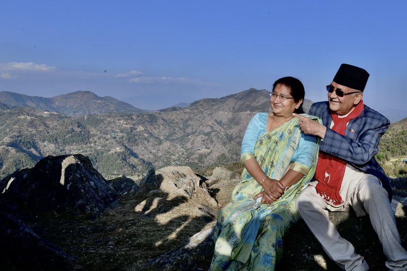 आफ्नी धर्मपत्नी राधिका शाक्यसंग अर्घाको मसुरपाटा डाँडामा बसेर पूर्व प्रधानमन्त्री तथा नेकपा एमालेका अध्यक्ष केपी शर्मा ओलीले खिचेको तस्बिरले दुई दिनदेखि सामाजिक संजाल तताएको छ ।