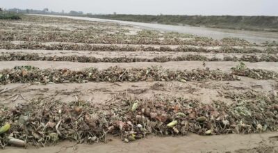 कपिलवस्तु ।हिउँदे बाढीका कारण शिवराज नगरपालिका वडा नम्बर ८ देवीपुरमा किसानले लगाएको तरकारी खेतीमा ठूलो