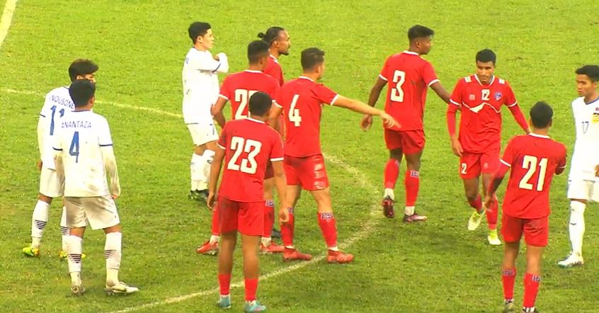 त्रिपुरेश्वरको दशरथ रङ्गशालामा भएको खेलमा १ गोलले पछाडि परेको अवस्थामा नेपालले उत्कृष्ट पुनरागमन गरेको हो । खेलको १७ औँ मिनेटमा लाओसका फोन्साक सिसाभाथले गोल गर्दै टोलीलाई अग्रता दिलाएका थिए । त्यसपछि खेलको २४ औँ मिनेटमा आयुष घलानले गोल गर्दै नेपाललाई १–१ गोलको बराबरीमा ल्याउँदा पहिलो हाफ बराबरीमा सकिएको थियो ।