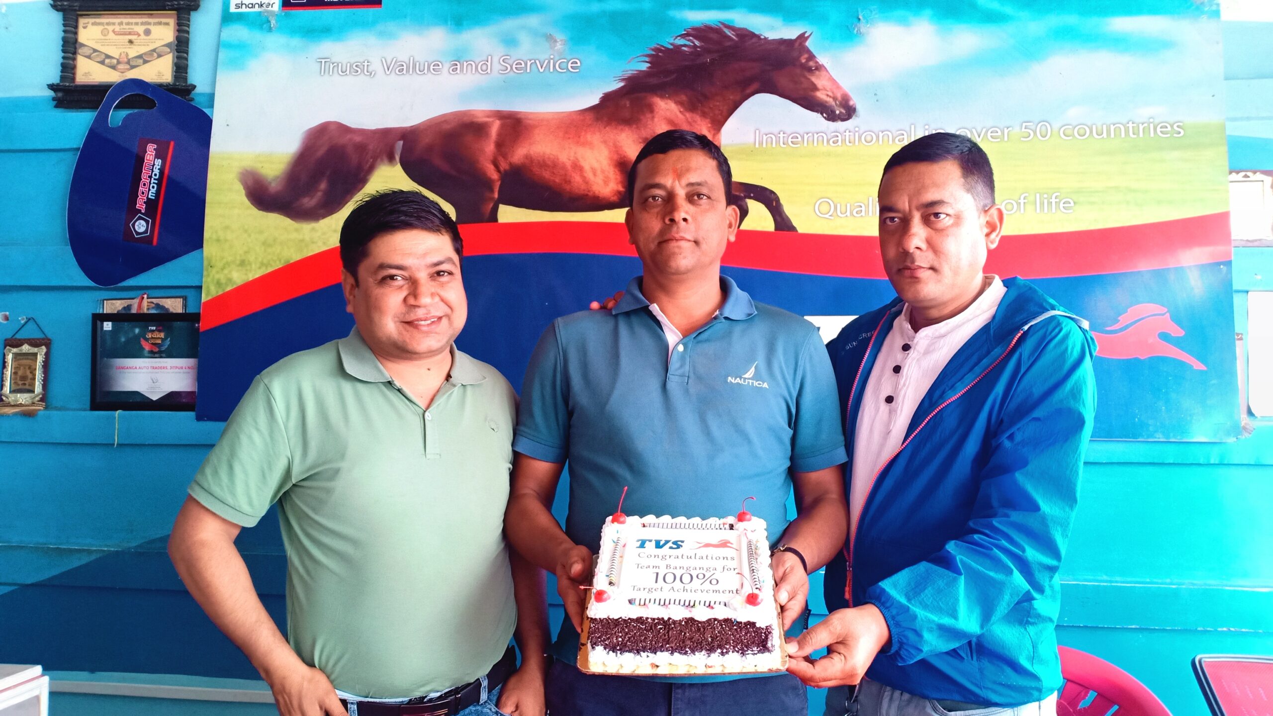 कपिलवस्तुको वाणगंगा अटो ट्रेडर्सले कम्पनीको टार्गेट (लक्ष्य) पुरा गरेको छ । शत प्रतिशत लक्ष्य प्राप्त गरेको वाणगंगा अटो ट्रेडर्सले एक कार्यक्रमको आयोजना गरी आफनो कर्मचारी टिम बिच खुशीयाली मनाएको हो । यसवर्ष टिभिएस ब्राण्डका मोटरसाईकल र स्कुटर विक्री गरेर लक्ष्य हासिल गरेकोमा कम्पनीले केक काटेर खुशीयाली मनाएको हो । पछिल्लो समय बजारमा मन्दी आइरहेका बेला टिभिएस कम्पनीले भने आफनो लक्ष्य अनुसार विक्री वितरण गरेर व्यवसायिक सफलता हात पारेको हो । उक्त सफलता हात पार्न ग्राहकको रोजाईमा परेको टिभिएस व्राण्डको आधिकारीक विक्रेता वाणगंगा अटो ट्रेडर्सका संचालकलाई कम्पनीले विशेष धन्यवाद प्रकट गरेको छ ।