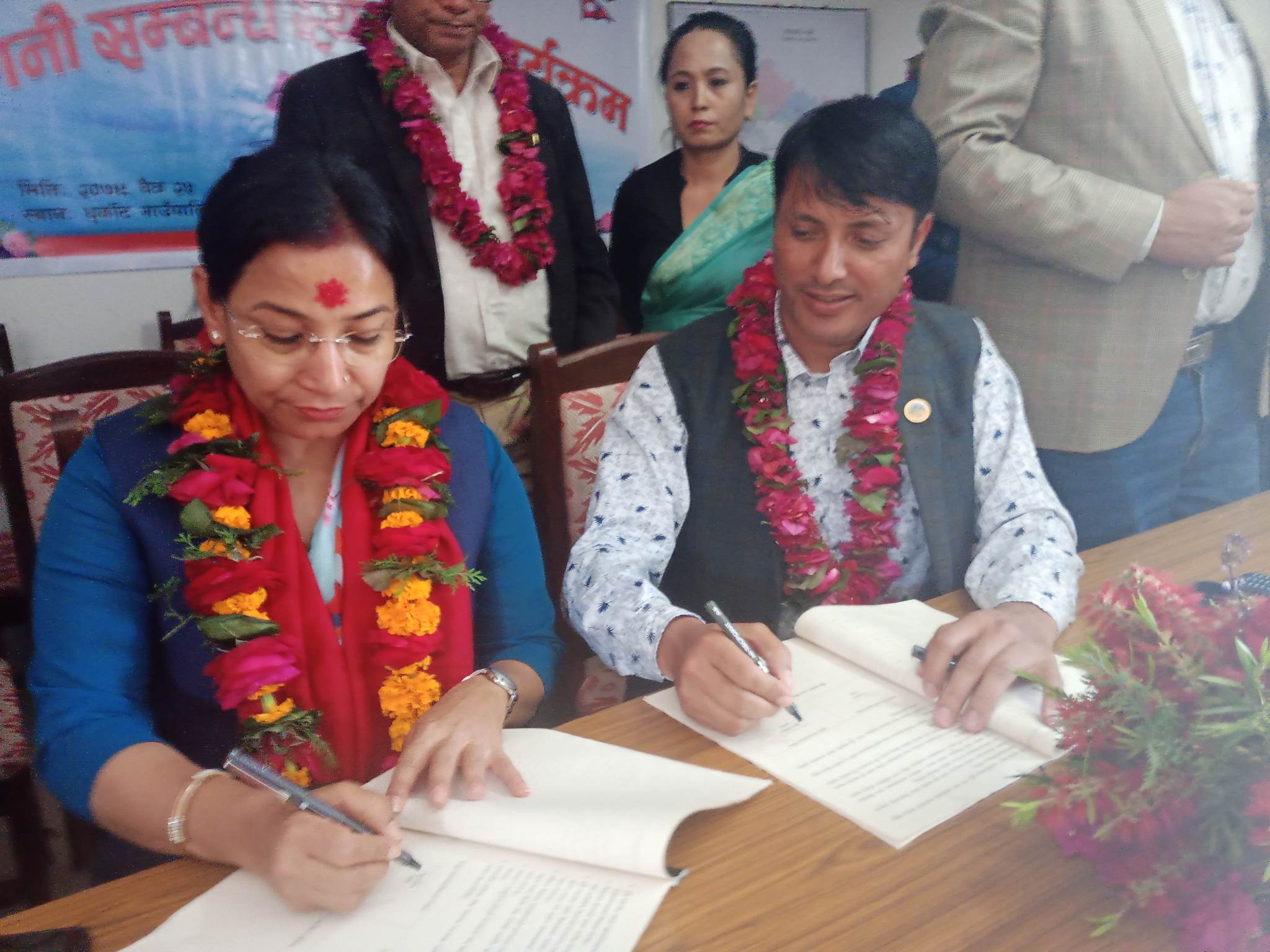 गुल्मीको धुर्कोट गाउँपालिका र भरतपुर महानरपालिकाबीच भगिनी सम्बन्ध स्थापना भएको छ । भरतपुर महानगरपालिकाकी मेयर रेणु दाहाल र धुर्कोट गाउँपालिका अध्यक्ष भूपाल कुमार पोखरेलले गुल्मीमा एक समारोहका बीच आइतबार समझदारी पत्रमा हस्ताक्षर गरेका हुन् ।