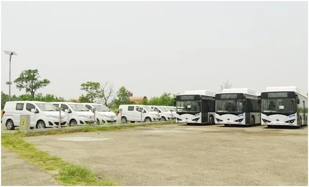 लुम्बिनीलाई प्रदूषणमुक्त राख्न २०७७ मङ्सिर ९ गते यी विद्युतीय बस र ट्याक्सी लुम्बिनी ल्याइएको हो तर आवश्यक कानुनी प्रक्रियामा ढिलाइ र सञ्चालनको नमूना तयार नहुँदा दुई वर्षभन्दा बढी समयदेखि खुला आकाशमुनि थन्किएका थिए । भैरहवास्थित गौतमबुद्ध अन्तर्राष्ट्रिय विमानस्थलबाट बुद्ध जन्मस्थल लुम्बिनी र बुद्धस्थल तिलौराकोट, रामग्राम र देवदहसँगलगायतका बुद्धसँग सम्बन्धित क्षेत्रलाई जोड्न र ती क्षेत्रमा पर्यटक आवतजावत सहज बनाउन ती साधन अनुदानमा आएका हुन् ।