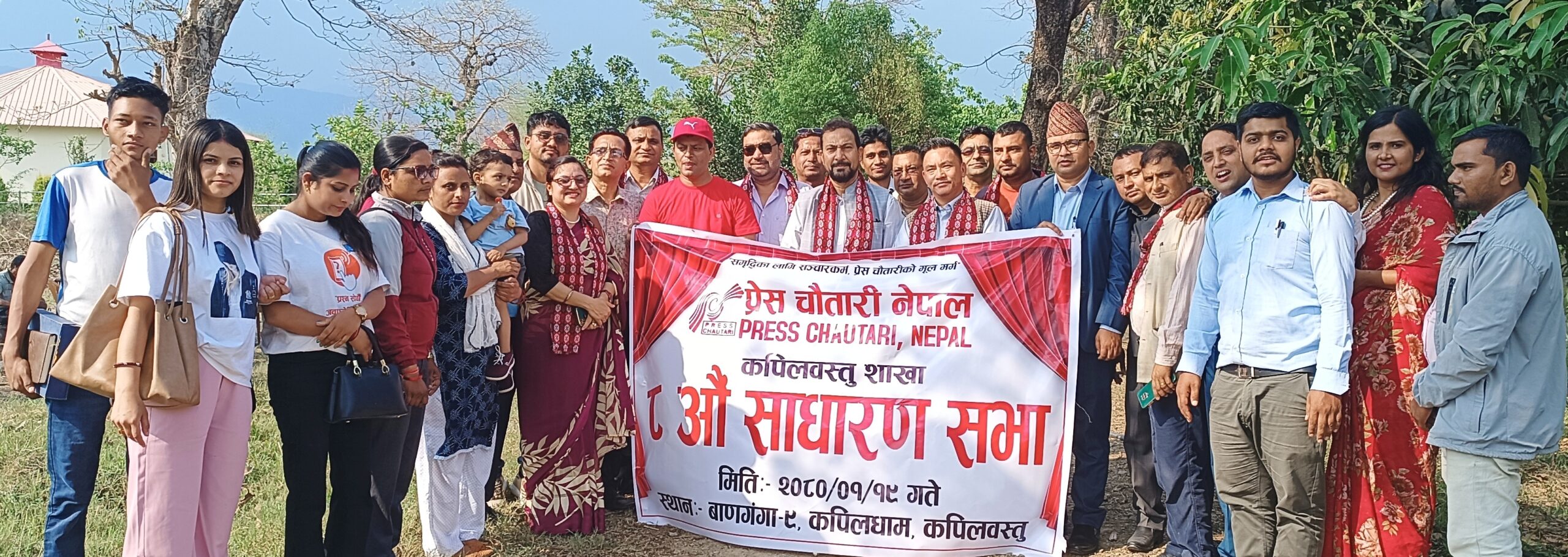 प्रेस चौतारी नेपाल कपिलवस्तुले कपिलधामबाट ८ बुदे घोषणापत्र जारी गरेको छ । प्रेस चौतारी कपिलवस्तुको ८ औं वार्षिक साधारण सभाको अवसरमा ८ बुदे घोषण पत्र जारी गरेको हो ।