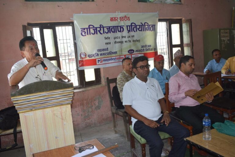 प्रतियोगीतामा बुद्धभूमि नगरपालिकाका नगर प्रमुख केशव कुमार श्रेष्ठले प्रतियोगीलाई पहिलो प्रश्न सोधेर कार्यक्रमको उद्घाटन गरेका थिए । नगर प्रमुख श्रेष्ठले विद्यार्थीहरुमा बौद्धिक विकासका लागि सबै पक्षको ज्ञान हुनु अवाश्यक रहेको बताए । आफूले हरेक बर्ष यो कार्यक्रम राख्दै आएको भन्दै यसले विद्यार्थी विद्यार्थी बीचको आत्मियतालाई समेत बढवा दिने जनाए । ज्ञानको लागि किताब मात्र नभएर विभिन्न रचनात्मक कार्यक्रम पनि जरुरी पर्ने भन्दै नगरपालिकाले हरेक बर्ष यस्ता कार्यक्रम गर्दै आएको उनले बताए ।