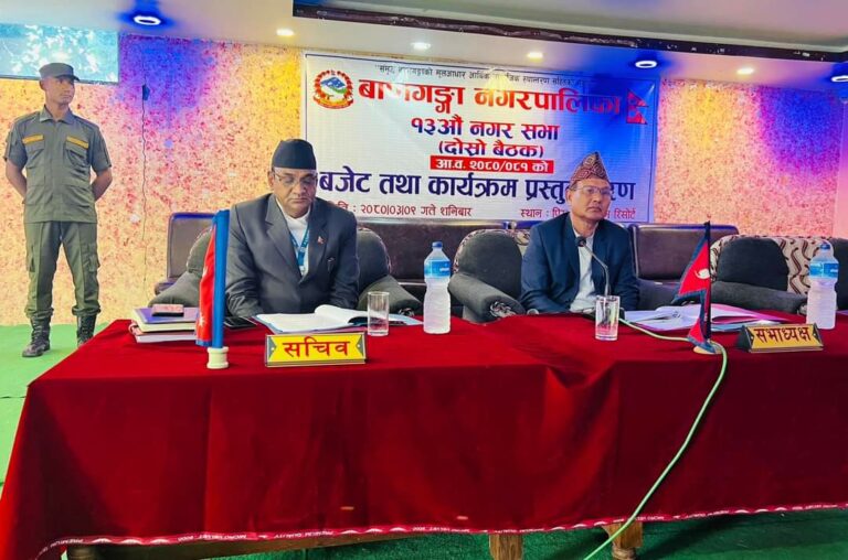 कपिलवस्तु बाणगंगा नगरपालिकाको आ.ब. २०८०।८१ को बजेट तथा कार्यक्रम प्रस्तुत गरे लगत्तै स्थगित भएको छ । नगर प्रमुख चक्रपाणी अर्यालले तेहौं नगर सभाको अध्यक्षता गरेलगत्तै नगर सभा शुरु भएको थियो । सभामा वाणगंगा नगरपालिकाकी उपप्रमुख रीता कुमारी चौधरीले बजेट प्रस्तुत गर्दागर्दै बिचैमा स्थगित भएको हो ।