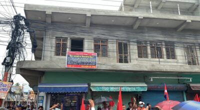 रुपन्देही ।विप्लब निकट नेकपा माओवादीका कार्यकर्ताले रुपन्देहीको सिद्धार्थनगर नगरपालिका वडा नं ५ मिलनचोकस्थित ’मिटरब्याजी’ रमानन्द
