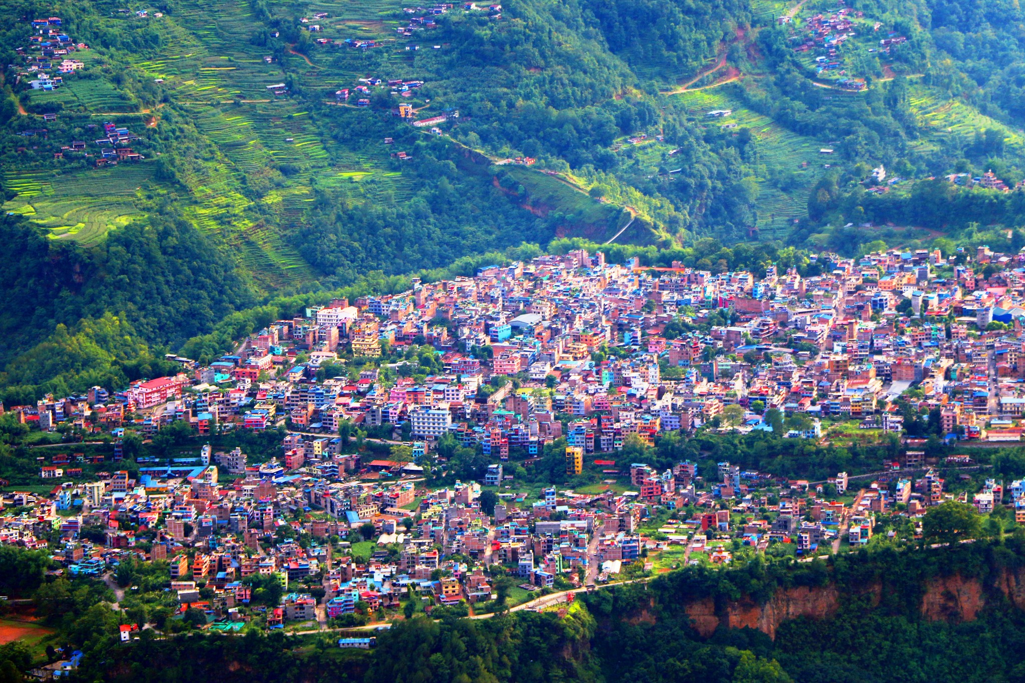 पर्वत जिल्लाको पर्यटकीयस्थल बनौलेकबाट देखिएको बागलुङ बजार। बनौलेकबाट पर्वत जिल्लाको कुश्माबजार, म्याग्दी जिल्लाको बेनीबजार र बागलुङ बजार एकसाथ देख्न सकिन्छ। तस्बिर: खेमराज गौतम/रासस