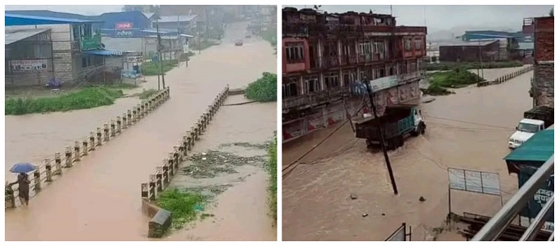 लगातारको वर्षापछि आएको बाढीका कारण बनेपाको पुल बजार डुबानमा परेको छ ।