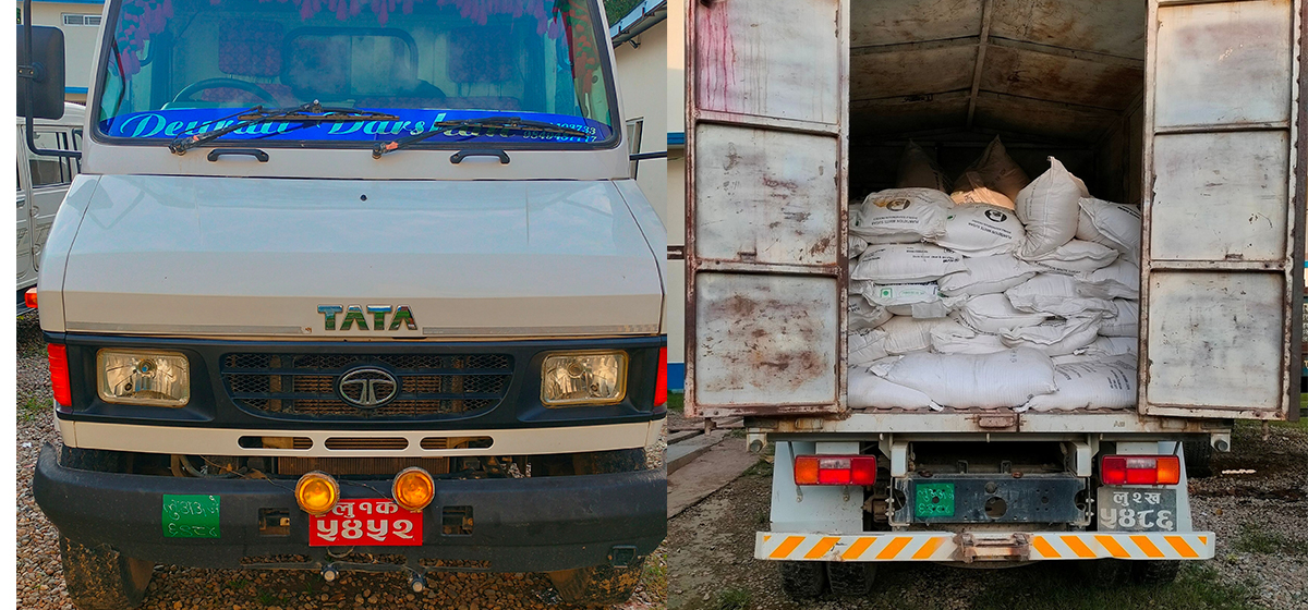 प्रहरी टोलीले शंका लागि चेकजाँच गर्नेक्रममा अगाडी रातो नम्बर प्लेटको लु १ क ५४५२ र पछाडी कालो नम्बर प्लेटको लु २ ख ५४८६ नम्बरको मिनी ट्रकमा ६४ बारो चिनीसहित पक्राउ गरिएको बोहोराले बताइन्। गोप्य सूचनाका आधारमा तस्करी गरी भित्राइएको चिनी र गाडी बरामद भएको उनले बताइन् ।
