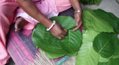 पाल्पा ।आधुनिकतासँगै हराउन थालेका सालको पातबाट बनाइने दुना टपरी, लाफा, खोरी बनाउने काम पाल्पामा व्यवसायिक