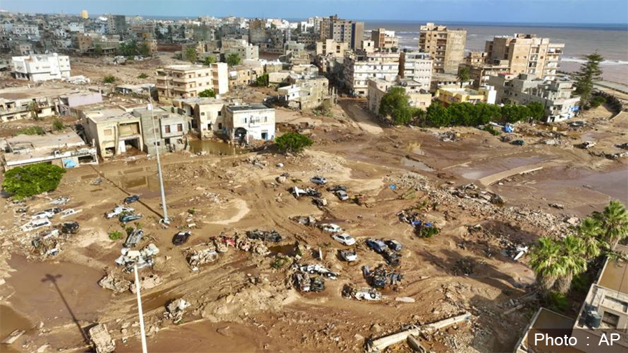 डेनियल नामको आँधीका कारण आइतबार राति डेर्नामा सुनामी जस्तो बाढी आएको थियो । उक्त बाढीले करिब एक लाख जनसंख्या रहेको डेर्ना शहरको धेरै इलाकालाई बगाएर समुद्रमा पुर्याएको समाचार एजेन्सीहरुले जनाएका छन् ।