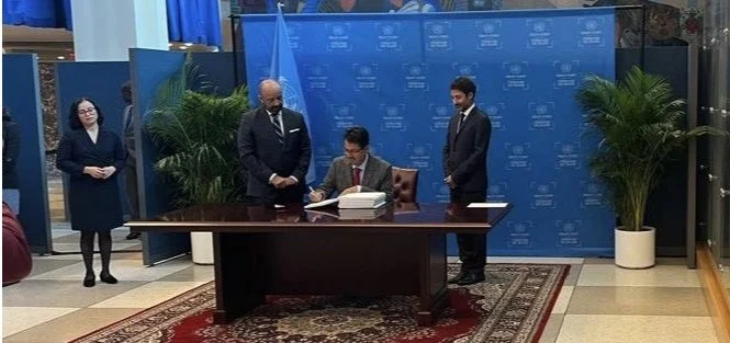 राष्ट्रसङ्घको मुख्यालय न्यूयोर्कमा बुधबार आयोजित समारोहमा नेपालको तर्फबाट मन्त्री साउदले हस्ताक्षर गरे । अतिकम विकसित देशबाट यो सम्झौतामा हस्ताक्षर गर्ने नेपाल एक हस्ताक्षरकर्ता देश बनेको छ ।
