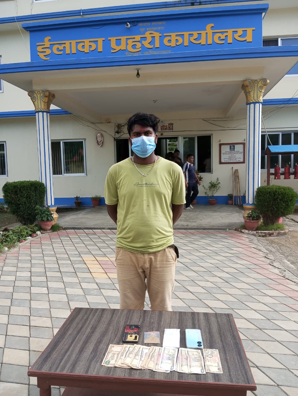 कपिलवस्तुको वाणगंगा नगरपालिका वडा नं. ३ बभनीमा शंकास्पद अवस्थामा रोकिराखेको लु ८३ प ९७६२ नम्बरको कालो पल्सर मोटरसाइकलमा बसिरहेका कपिलवस्तु नगरपालिका वडा नं. ९ जगदिशपुर बस्ने वर्ष २६ को घनश्याम मुराउलाई चेकजाँच गर्ने क्रममा पक्राउ गरिएको हो ।