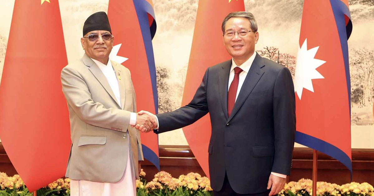चीन भ्रमणमा रहेका प्रधानमन्त्री पुष्पकमल दाहाल प्रचण्ड र चिनियाँ प्रधानमन्त्री लि छ्याङबीचको द्विपक्षीय वार्ताका क्रममा सम्झौताहरुमा हस्ताक्षर भएको हो।