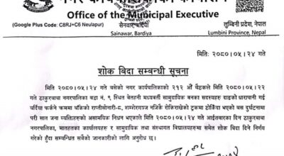 बर्दिया ।बर्दियाको ठाकुरबाबा नगरपालिकाले आज शोक बिदा दिएको छ । भ्रमणबाट फर्किँदै गरेको बस अस्ति