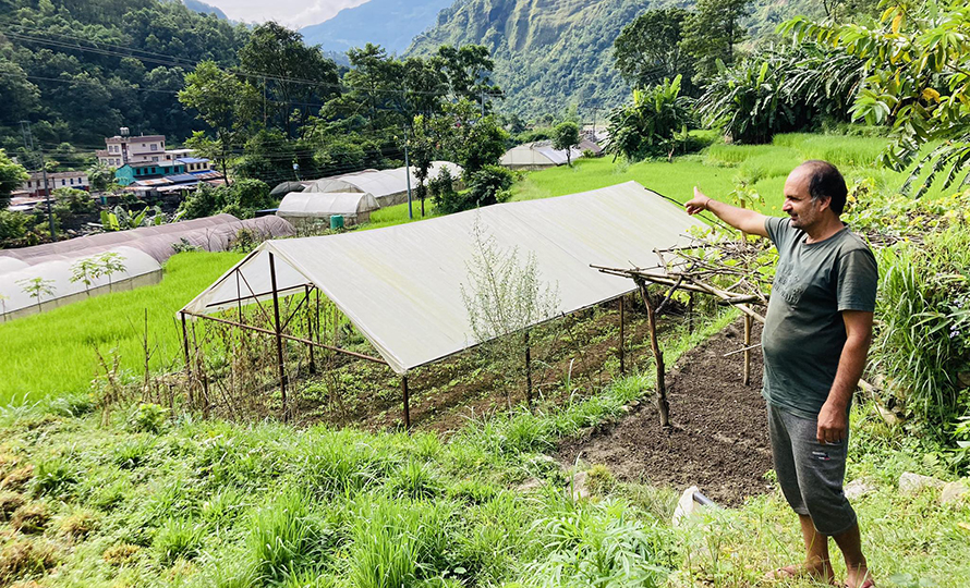 ‘व्यवासयिक कृषि र पशुपालन ३२ वर्षदेखि गरिरहेको छु, तर पछिल्लो पाँच वर्षयता मात्रै कृषिमा आधुनिक प्रविधिको प्रयोग सुरु गरेपछि वार्षिक आम्दानीमा दोब्बर भएको छ’, सापकोटाले भने, ‘बाह्र रोपनी जग्गामा नौवटा प्लाष्टिक हाइटेक टनेल र अन्य खाली जग्गामा तरकारी खेती गरिरहेको छु ।’
