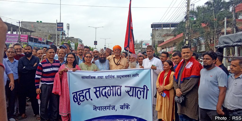 नेपालगञ्जमा आज वृहत सद्भाव पदयात्रा आयोजना गरिएको छ । सामाजिक सद्भाव र धार्मिक एकता कायम गर्ने उद्देश्यले बागेश्वरी मन्दिरका महन्त चन्द्रनाथ योगी, मुस्लिम धर्मका धर्मगुरु मौलाना अब्दुल जब्बार मञ्जरीलगायतका धर्मगुरु, नागरिक समाजका प्रतिनिधि र सर्वसाधारणको सहभागितमा पदयात्रा निकालिएको हो ।