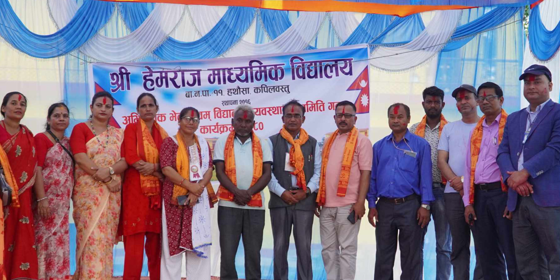 कपिवलवस्तु जिल्लाको बाणगंगा नगरपालिका वडा नं ११ हथाैसा अवस्थित हेमराज मा.वि.मा शुक्रबार भएको अभिभावक भेलाले नयाँ विद्यालय व्यवस्थापन समिति र शिक्षक अभिभावक संघ गठन गरेको छ ।