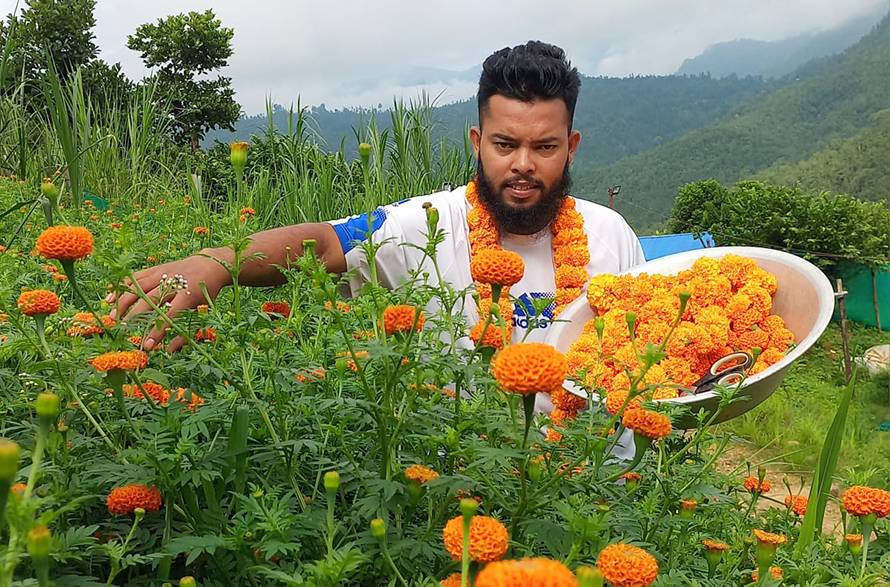 घाँसका विरुवा उत्पादनसँगै यसवर्षदेखि फूल खेती पनि सुरुवात गरेका छन् । गाउँपालिकाले धेरै कृषकलाई पुष्प खेति गरेर बाहिरबाट आयात हुने फूलका मालाहरु विस्थापित गर्न अभियान चलाएको थियो । तर कसैले पनि फूल खेती गर्न चासो देखाएका थिएनन । यहिँ क्रममा नेपालीले यसवर्षदेखि व्यवसायीक रुपमा फूल खेतीको सुरुवात गरेका हुन् ।