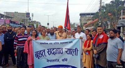 बाँके ।नेपालगञ्जमा आज वृहत सद्भाव पदयात्रा आयोजना गरिएको छ । सामाजिक सद्भाव र धार्मिक एकता