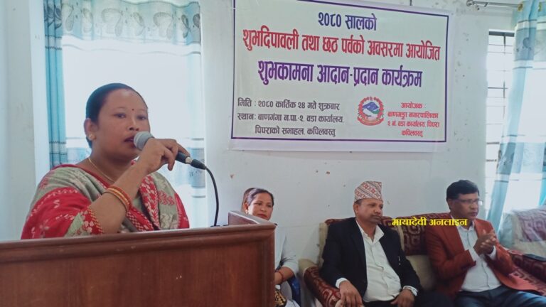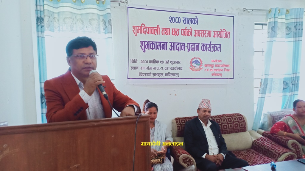 त्यस्तैगरी बाणगंगा नगरपालिकाकी उपप्रमुख रिता कुमारी चौधरीले सम्पूर्ण नगरवासीलाई शुभकामना व्यक्त गर्दै हाम्रा संस्कृति र चाडपर्वको जगेर्ना गर्दै मौलिकपनलाई जोगाई राख्नुपर्ने बताउनुभयो । चाडपर्वमा उपभोक्ताको स्वास्थ्यमा खेलवाड नगरी खाद्य स्वच्छतामा ध्यान दिनुपर्ने बताउनुभयो ।