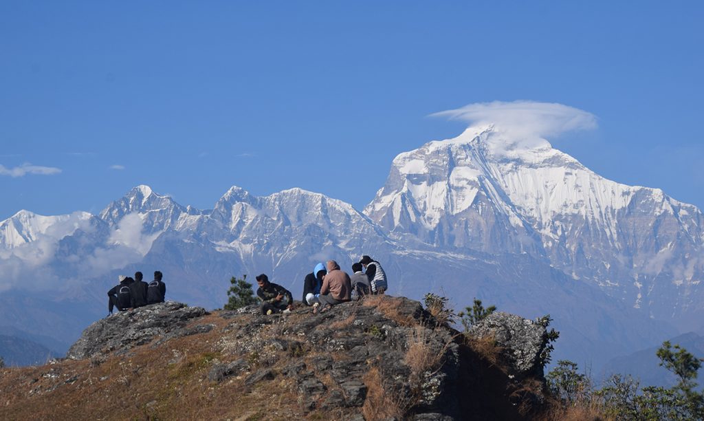 पहाडको थुम्कोबाट मनोरम हिमशृङ्खला र भू-बनोटको अवलोकन गर्न पाउँदा मन प्रफुल्लित भएको केभहिलमा पुग्नुभएका बेनीका सङ्गीता पौडेलले बताए ।