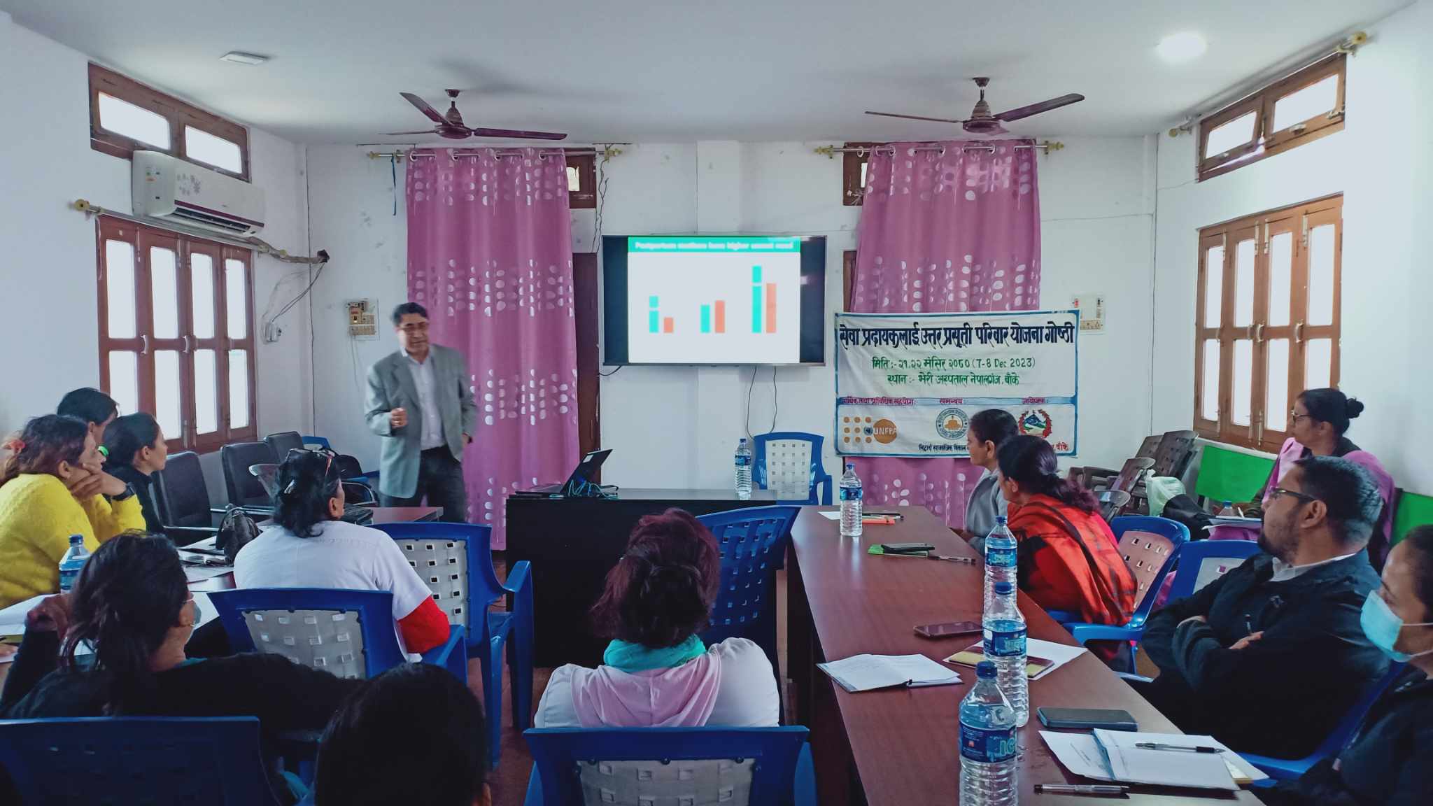 ३० जनाको सहभागिता रहेको उक्त गोष्ठीमा डा. राजेन्द्र भद्राले सहजीकरण गर्नुभएको थियो । उहाँले परिवार नियोजन, अस्थायी साधन, स्थायी सेवा, प्रसुती सेवा प्रवाह, विभिन्न देशको स्वास्थ्य अवस्था, वकालत र कार्ययोजना कार्यान्वयन लगायतका विषयमा छलफल गर्नुभएको थियो ।