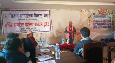 वाणगंगा । सिद्धार्थ सामाजिक विकास केन्द्रको बार्षिक सामाजिक परीक्षण कार्यक्रम शुक्रबार वाणगंगा ४ ठाकुरापुरमा सम्पन्न