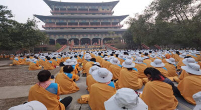 बुटवल । गौतम बुद्धजन्मस्थल लुम्बिनीमा दक्षिण कोरियाका भिक्षु पोम्न्यू सुनिमको नेतृत्वमा आएका १२५० विद्याथीहरूको समूहले