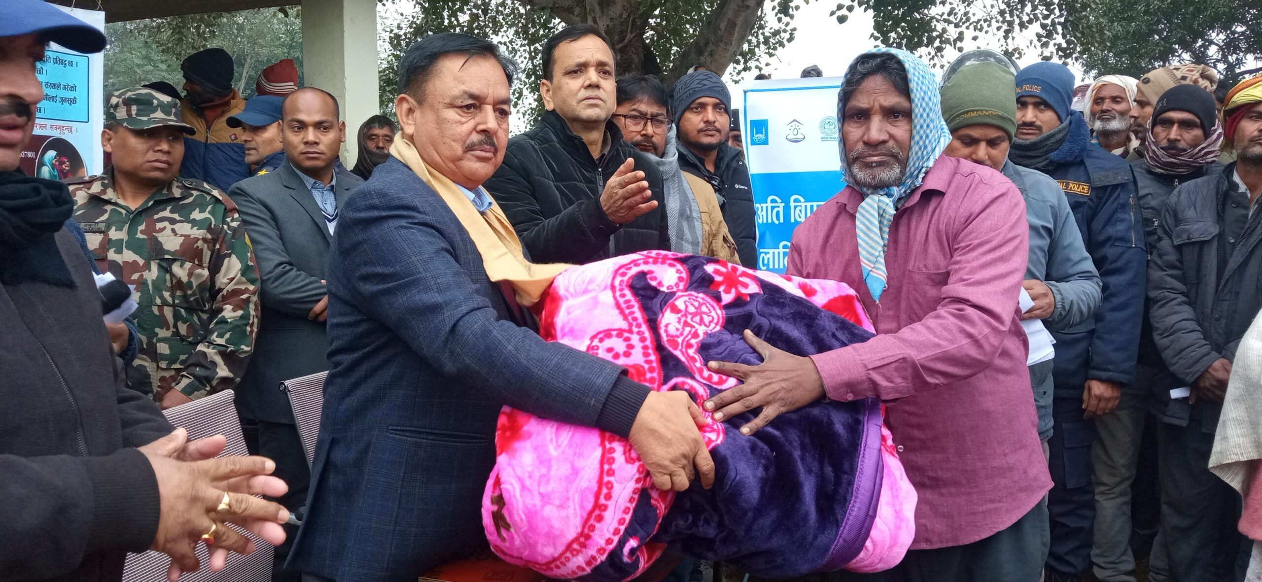 महिला बालबालिका तथा ज्येष्ठ नागरिक मन्त्री सुरेन्द्रराज आचार्यले बिपन्नलाई कम्मल हस्तान्तरण गरेका थिए ।