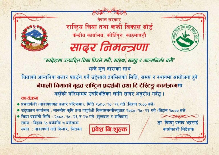 नेपालको चिया उत्पादन तथा बजारीकरणमा सहजता ल्याउन प्रदर्शनीको आयोजना गर्न लागिएको उनले बताए।