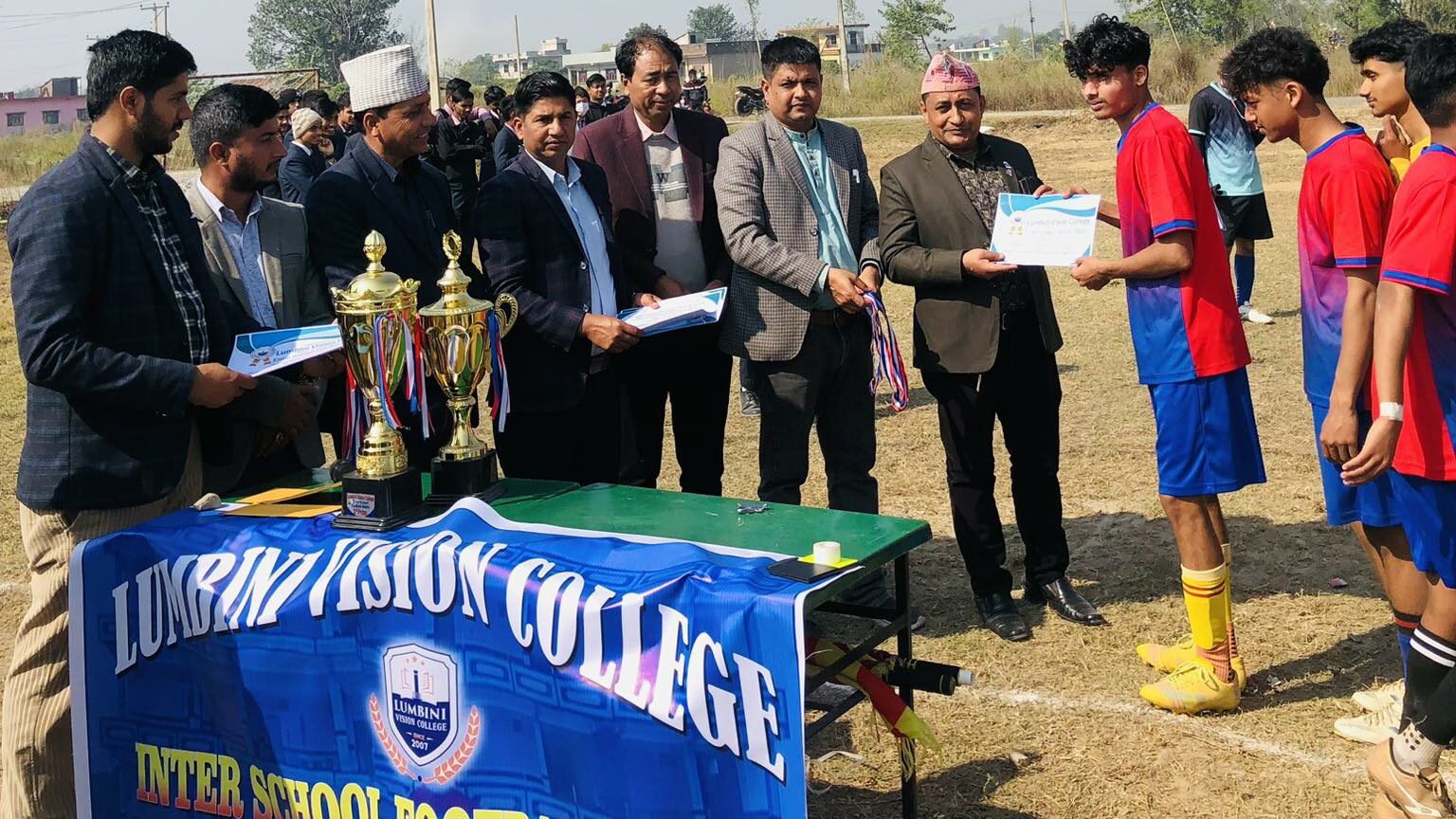 कपिलवस्तुको वाणगंगा नगरपालिका ३ गंगौलियामा रहेको लुम्बिनी भिजन क्याम्पसको खेल मैदानमा सम्पन्न सेभेन ए साइड फुटबल प्रतियोगितको उपाधि लुम्बिनी भिजन क्याम्पसले हात पारेको छ । लुम्बिनी भिजन वेलफेयर ग्रुपद्वारा आयोजित उक्त प्रतियोगिताको आज सम्पन्न फाइनल खेलमा आयोजक टिमले २-0 गोल अन्तरले होराइजन मा.वि. लाई पराजित गरेको हो ।