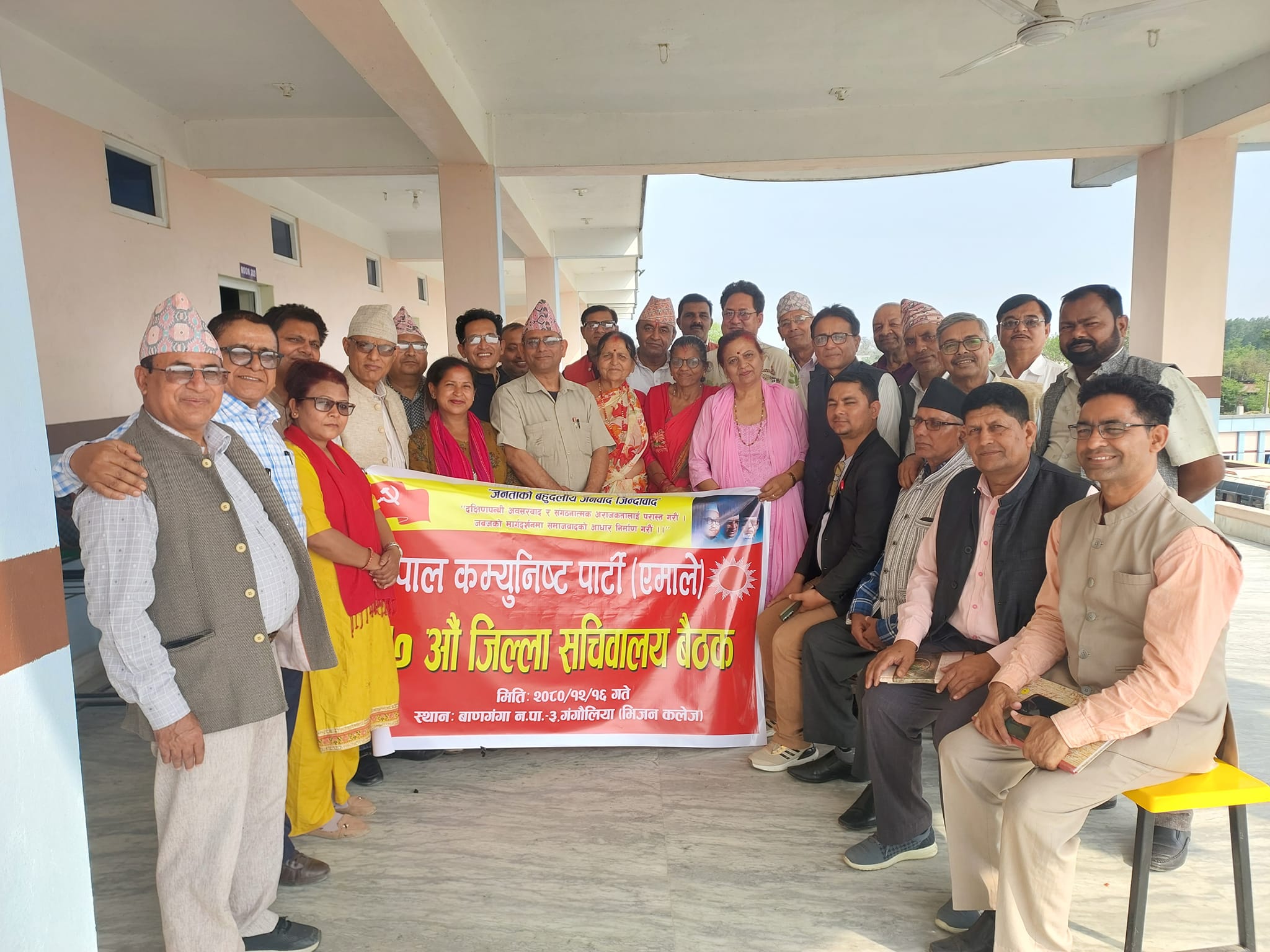 बैठक जिल्ला अध्यक्ष डम्मर शर्माको अध्यक्षता, उपाध्यक्ष विश्राम प्रसाद चौधरीको स्वागत मन्तब्य जिल्ला सचिव सिवि गहतराजले संचालनमा सम्पन्न भएको नेकपा (एमाले) जिल्ला प्रचार तथा प्रकाशन विभाग प्रमुख लक्ष्मण बेल्बासेले जानकारी दिनुभयो ।