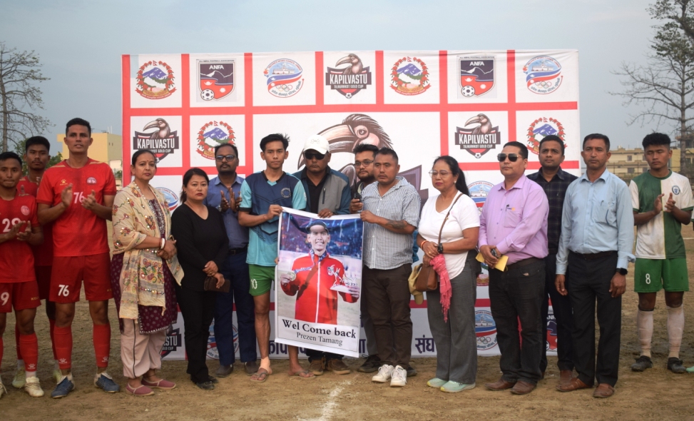 ब्लड क्यान्सरलाई जितेर खेलमा फर्किएका राष्ट्रिय फुटवल खेलाडी प्रिजन तामाङलाई कपिलवस्तुमा आर्थिक सहयोग गरिएको छ । प्रथम कपिलवस्तु तिलौराकोट गोल्डकपमा बुधवार उनलाई नगद ५१ हजार रुपैया फुटवल संघ कपिलवस्तुका अध्यक्ष तिलक थापाले हस्तान्तरण गरेका थिए ।