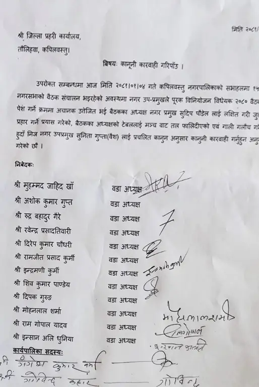नगरपालिकाका ८ जना वडा अध्यक्ष तथा ६ जना कार्यपालिका सदस्यले उपप्रमुख साहुविरुद्ध जाहेरी दर्ता गराएको पौडेलले जानकारी दिए ।