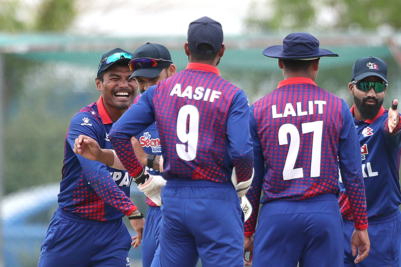 नेपालको टिममा कप्तान रोहित पौडेल, कुशल भुर्तेल, आसिफ शेख, दीपेन्द्रसिंह ऐरी, अनिल साह, कुशल मल्ल, सन्दीप जोरा, गुल्सन झा, करण केसी, प्रतिश जिसी, विवेक यादव, अभिनास बोहरा, सोमपाल कामी, ललित राजवंशी, आरिफ शेख र आकश चन्द छन्।