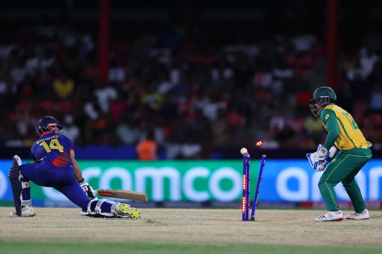 टी–२० विश्वकपमा नेपाल दक्षिण अफ्रिकासँग एक रनले पराजित हुँदै इतिहास रच्नबाट चुकेको छ । जितका लागि पाएको १ सय १६ रनको लक्ष्य पाएको नेपालले निर्धारित २० ओभरमा ७ विकेटको क्षतिमा १ सय १४ रन बनाउन सक्यो ।
