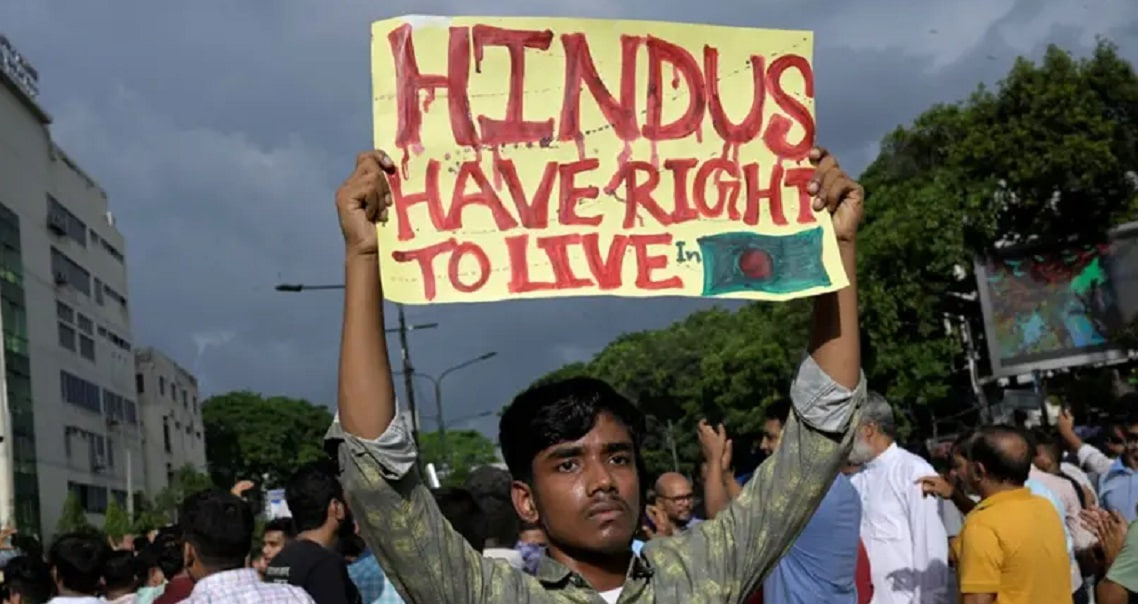 प्रदर्शनकारीहरूले बंगलादेशका विभिन्न भागमा हिन्दुका घर र अन्य सम्पत्तिमा भइरहेको आक्रमणको विरोध गरेका थिए।
