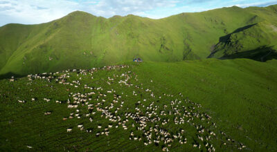 म्याग्दी ।समथर फाँट र भिरालो पाखामा फुलेका रंगीचंगी फूल । चरन क्षेत्रमा रमाइरहेका घरपालुवा जनावरको