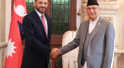 काठमाडौँ । प्रधानमन्त्री केपी शर्मा ओलीसँग नेपाल भ्रमणमा रहेका ओमानका विदेशमन्त्री सय्यद बद्र बिन हमाद